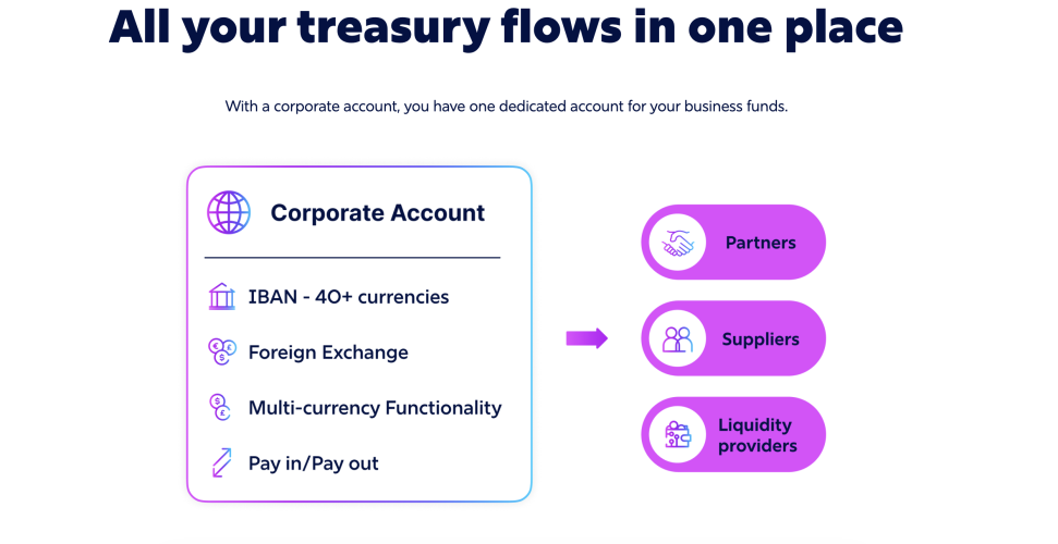 - Global reach with instant payments (SEPA, SWIFT, Faster Payments) and seamless fiat ↔ crypto conversion